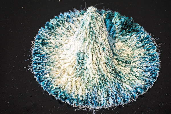 Eva jobbar med shibori-tekniken och hennes tredimensionella verk är underbara i sin viktlöshet och ljuskraft.