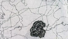 Vitt som snö, rött som blod, svart som ebenholtz. Tiden går fort: nu är det bara 2 dagar kvar att se utställningen Sagolikt på Dergårdsgalleriet i Lerum, onsdag kl 5 tar vi ner och packar ihop. Vitt som snö: Snötäcket Det blev snötäcket. Svårt att fotografera, och nästan lika svårt att sy. Att arbeta med…