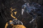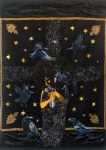 I bilden finns sju korpar, sju stjärnor i varje fjärdedel av bilden, dessutom tre blå stjärnor.